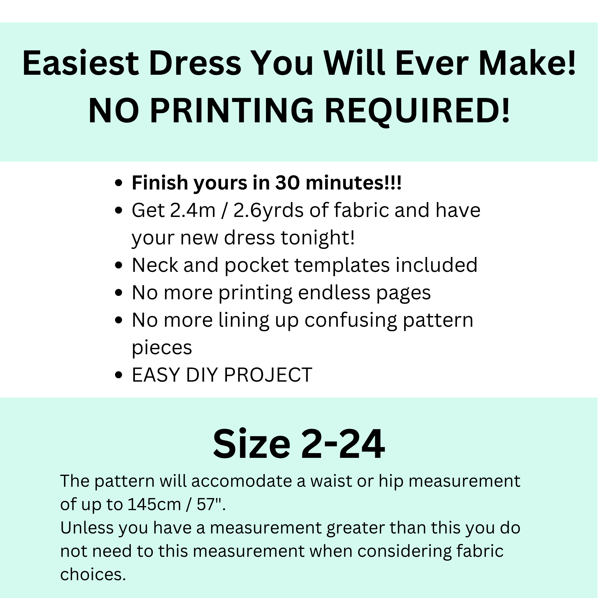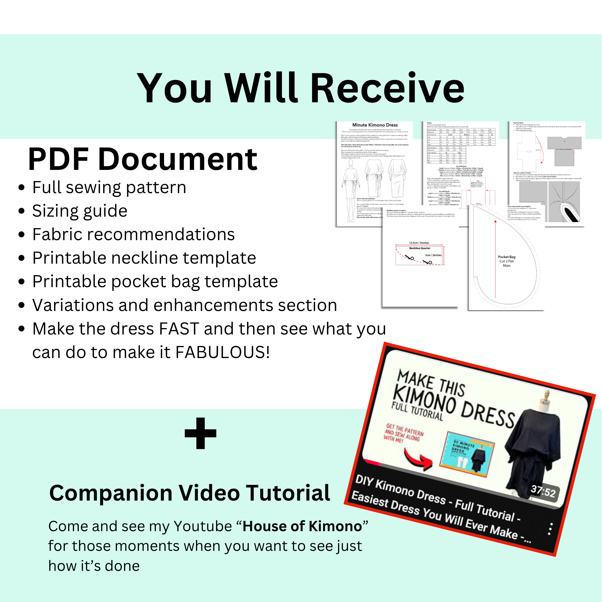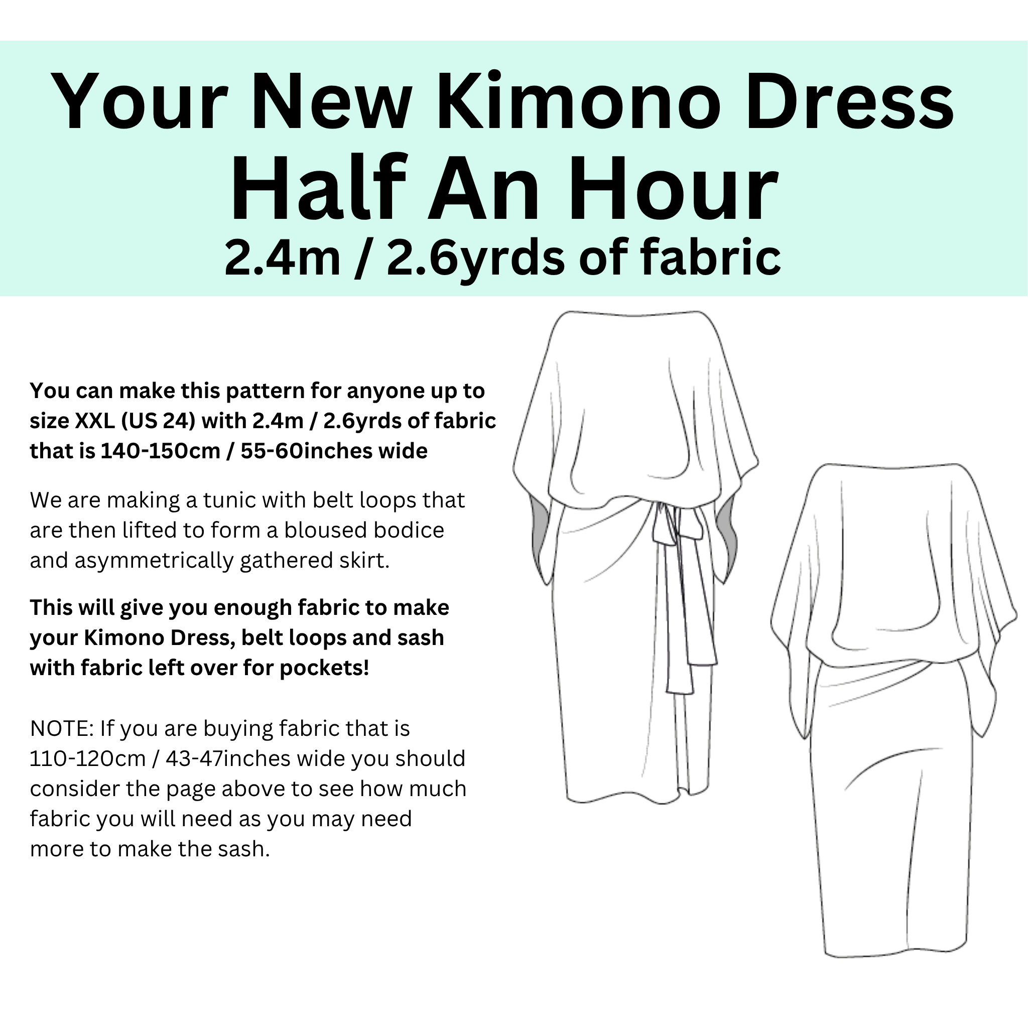 This is a paperless, measurement-based kimono dress pattern—no printing or taping required. Instead of paper templates, you’ll use the included measurement charts to mark fabric directly, making it fast, simple, and eco-friendly.