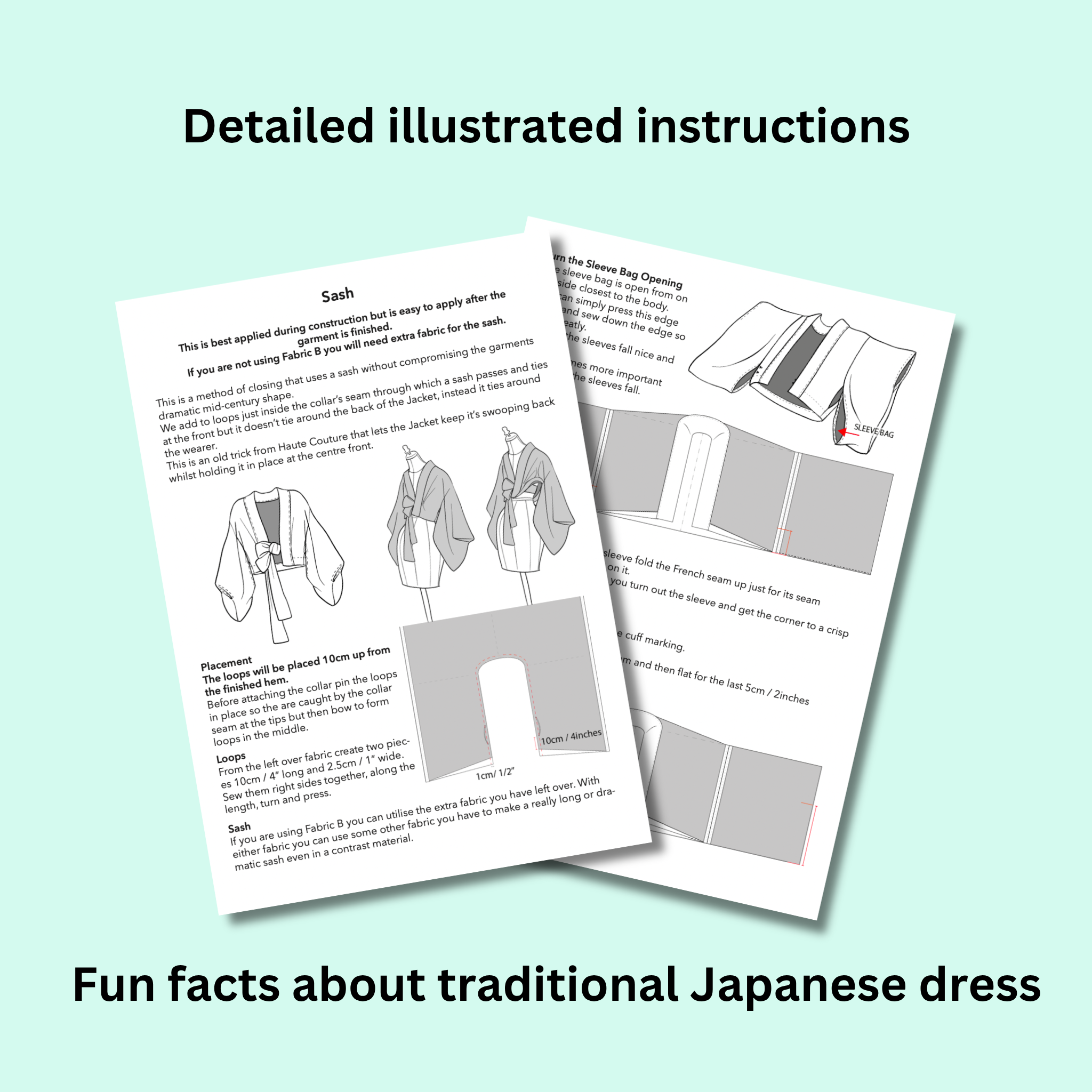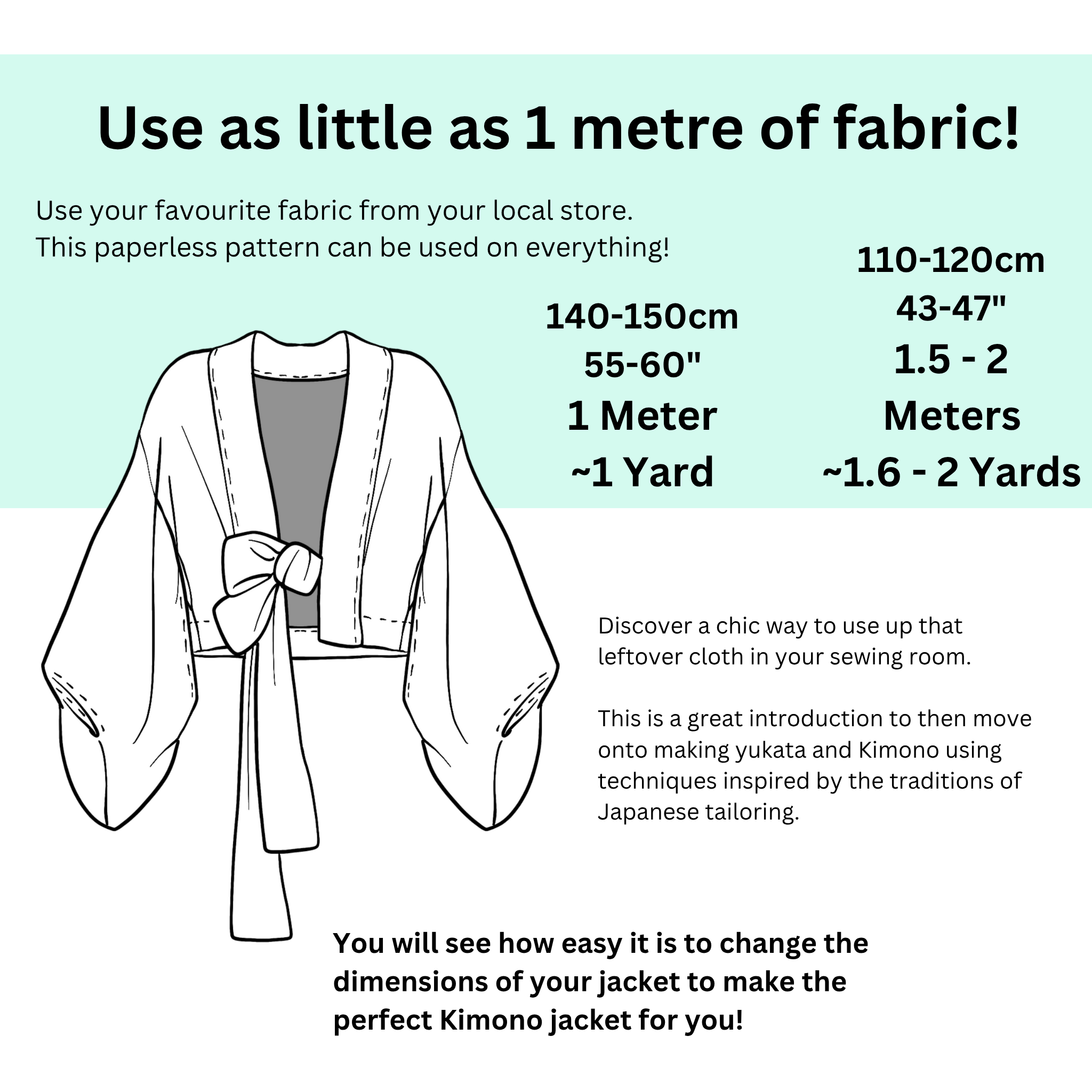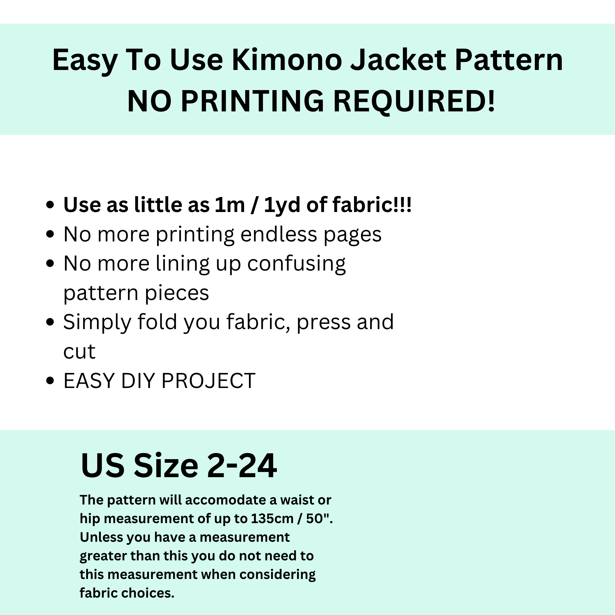 Sew your own stylish Kimono Jacket with this beginner-friendly paperless kimono jacket sewing pattern. Perfect as a casual layer or statement handmade piece, this kimono jacket pattern is inspired by traditional Japanese design but adapted for modern fabrics and everyday wear.