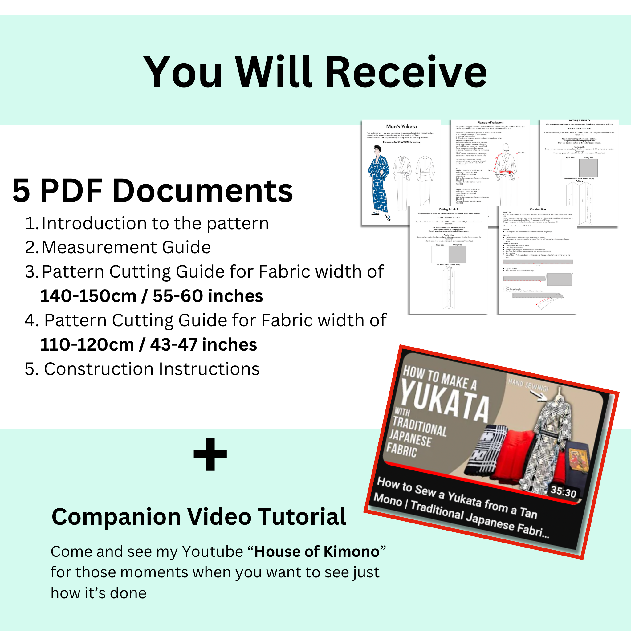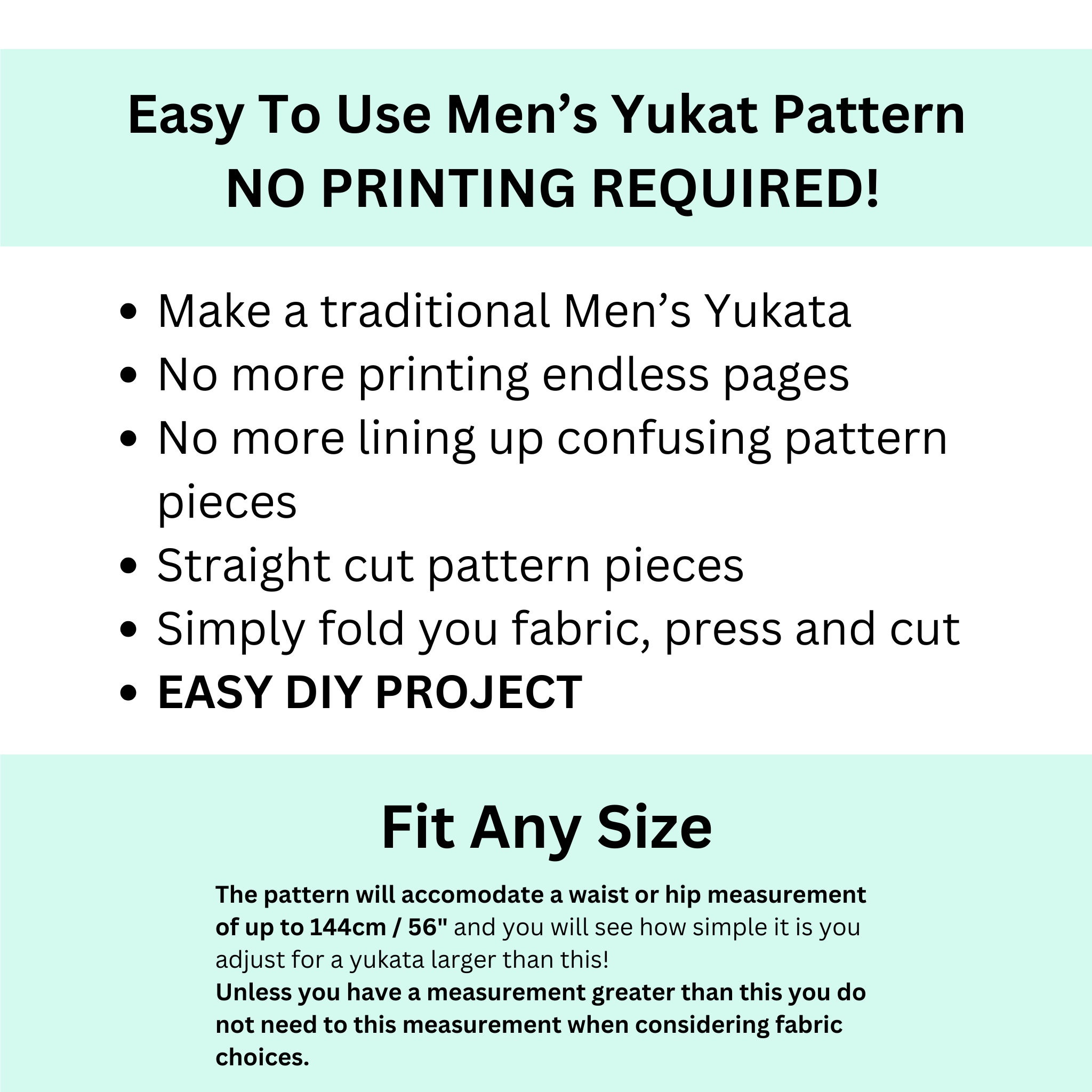 This is a easy paperless unlined mens yukata pattern which means you don't need to print anything out - it's measurement based and easy to follow. No complicated pieces of paper. Just simple step by step instructions using measurements.