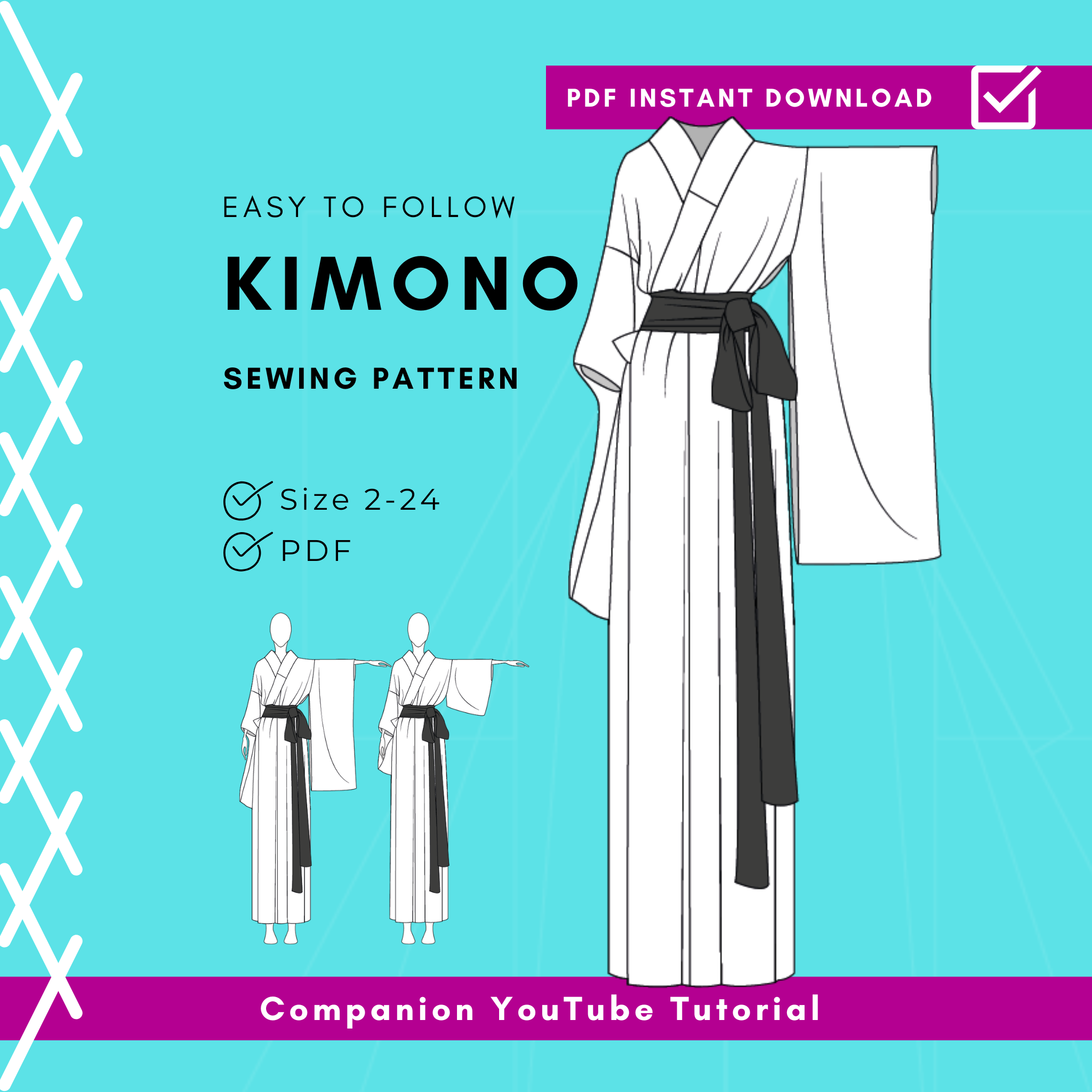 Sew your own traditional Kimono with this easy kimono sewing pattern. This is the essential kimono robe pattern—a full-length garment with wide sleeves and an open wrap front—adapted from Japanese design but simplified for modern fabrics and a home sewing machine.