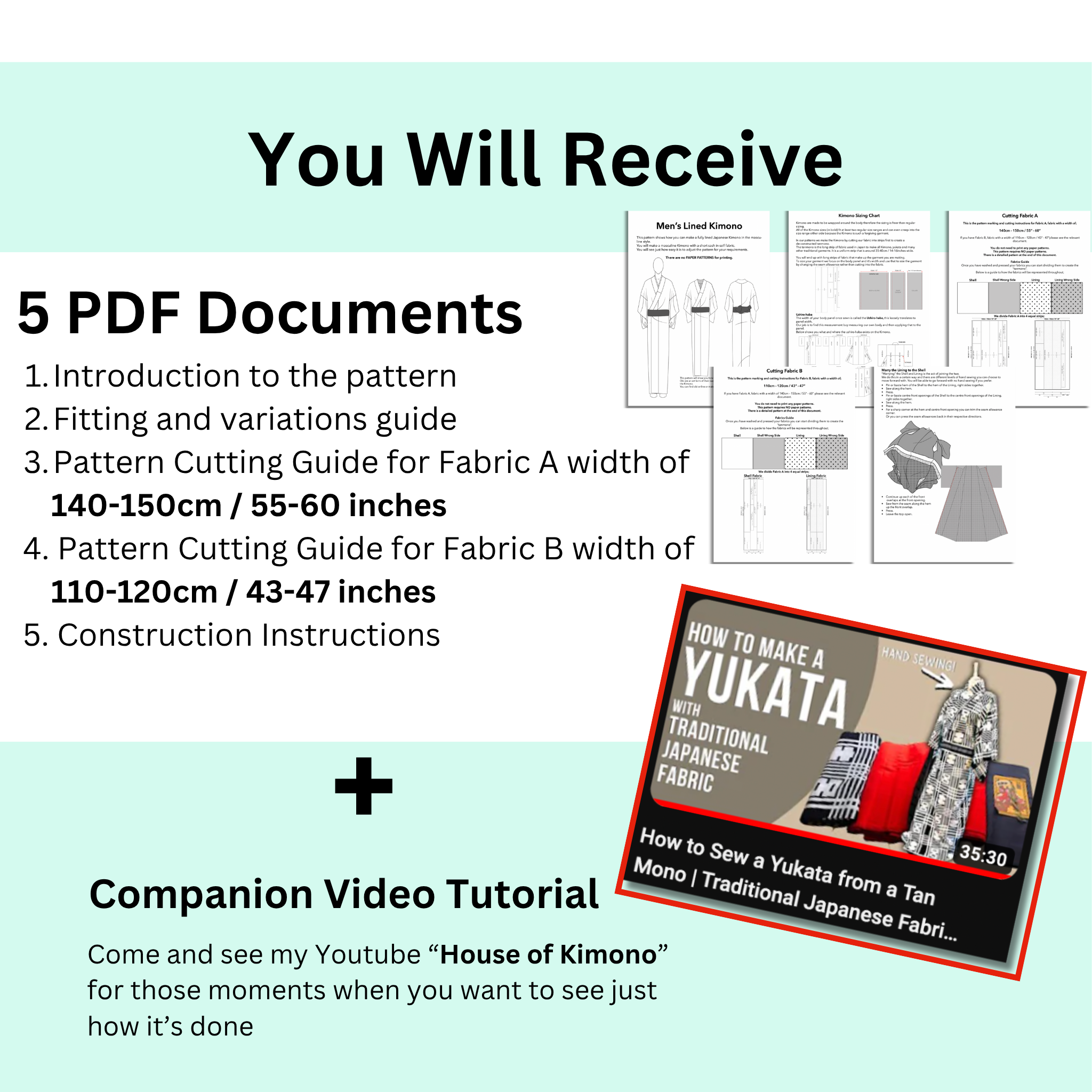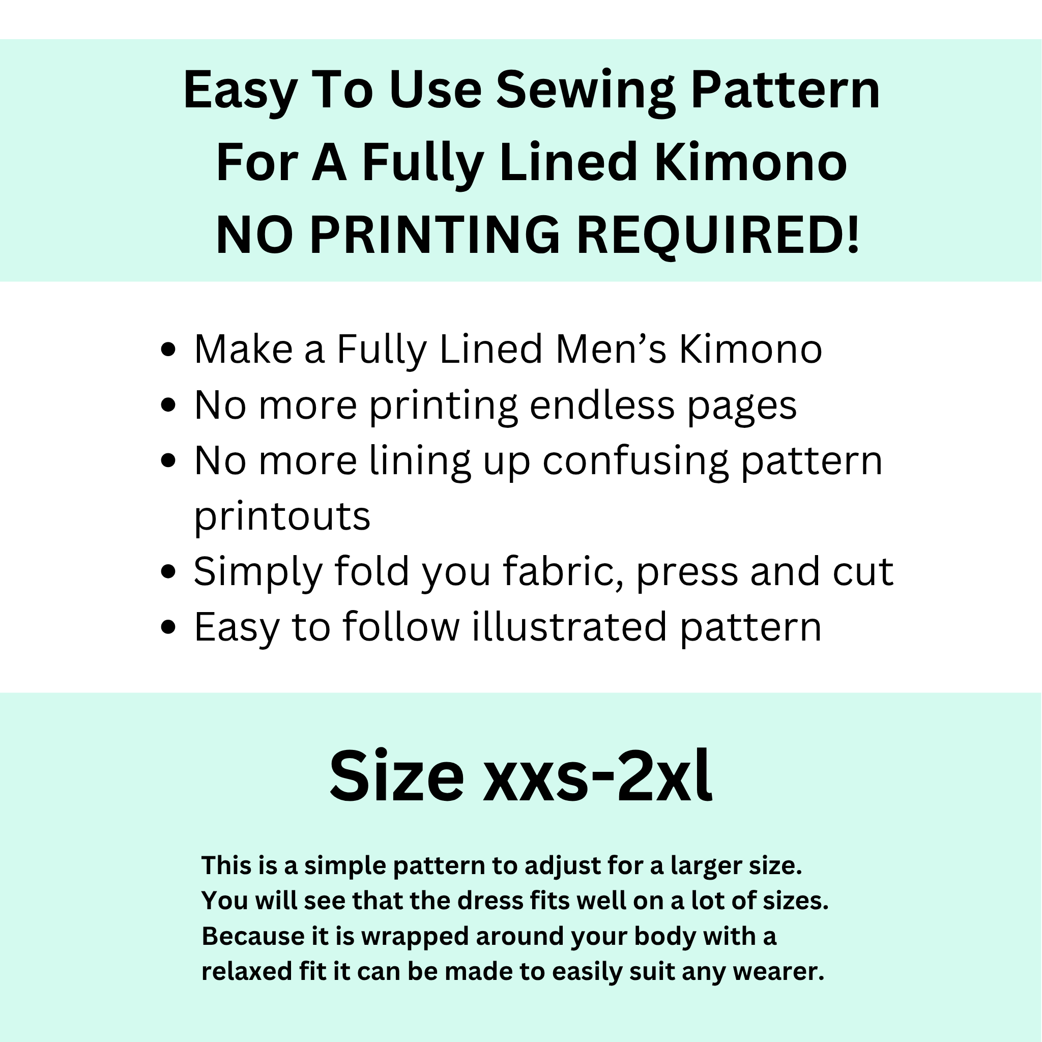 Use this lined men’s kimono sewing pattern to make your own traditional men’s kimono with this easy-to-follow pattern. This paperless men's kimono pattern is inspired by authentic Japanese men’s clothing, adapted so you can sew a fully lined kimono at home using modern fabrics and a regular sewing machine.