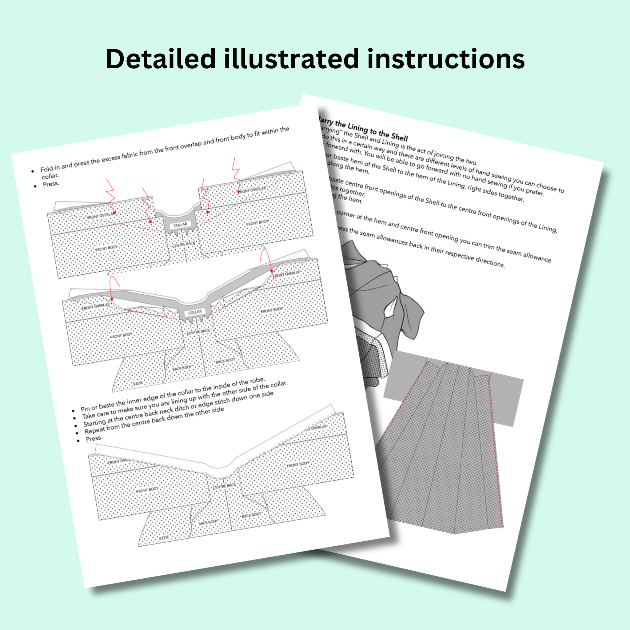 Known as an awase (lined mens kimono), this masculine style features a simple sash and straight seams, making it both elegant and surprisingly straightforward to construct. With step-by-step guidance, you’ll be able to cut, line, and assemble your kimono without needing printed pattern pieces – everything is measurement-based.